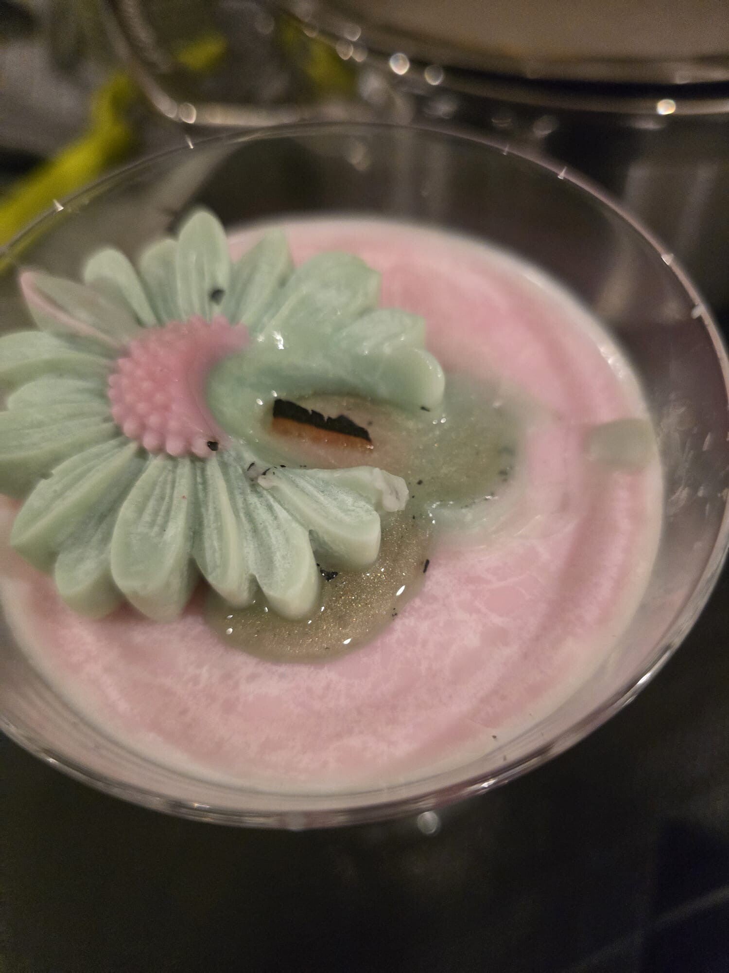 Kleurrijke cocktail kaars, met glitter bloem.